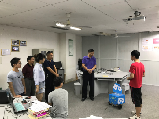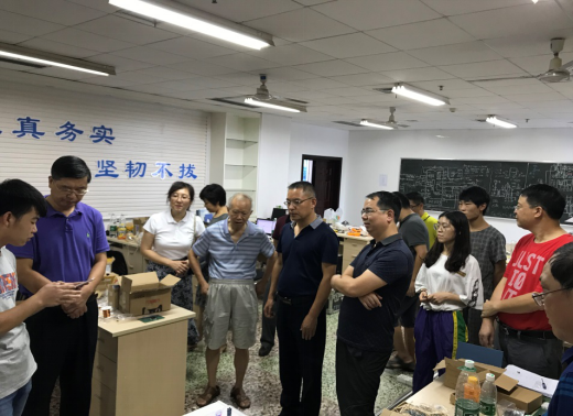韦成龙书记认真观看了参赛作品的演示情况,鼓励同学们锻炼动手能力,注重理论与实际相结合,将参赛作品应用到实际生活和工作当中,并预祝同学们在今年的比赛中取得更加优异的成绩,更上一个台阶。韦成龙书记还叮嘱老师和同学们要注意防暑和劳逸结合,并详细了解了学生暑期住宿条件和伙食情况,要求相关部门及时关注解决学生困难。